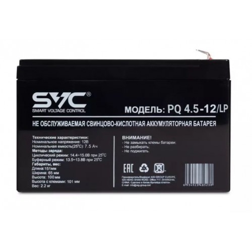 Аккумуляторная батарея SVC PQ4.5-12/LP 12В 4.5 Ач. Характеристики товара: