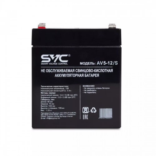 Аккумуляторная батарея SVC AV5-12/S 12В 5 Ач. Характеристики товара: