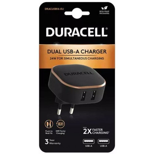 Универсальное зарядное устройство Duracell DRACUSB16-EU 24W 2хUSB-A Черный