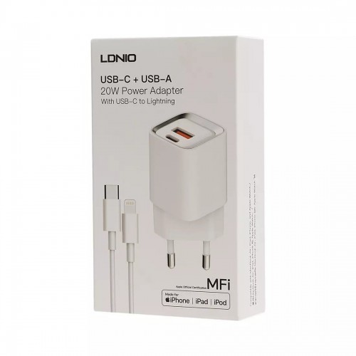 Универсальное зарядное устройство LDNIO A2318M MFI 20W USB-А USB-C Белый. Характеристики товара: