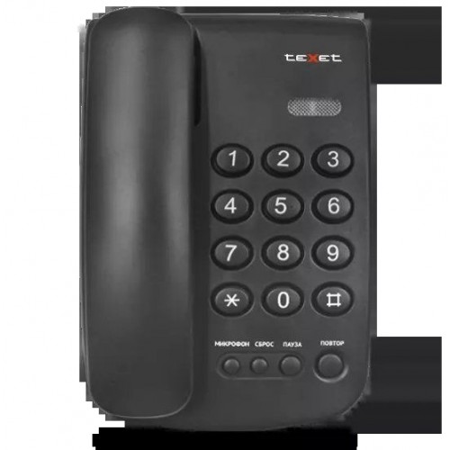Бренд - Texet. Тип устройства товара - Телефон проводной. Модель - TX-241. Основной цвет - Чёрный. Определитель номеров АОН - нет. Caller ID - нет. Дисплей - нет. Громкая связь - нет. Цифровой автоответчик - нет. Автодозвон - нет. Повторный набор номера - есть. Тональный набор - есть. Набор номера без снятия трубки - нет. Регулятор уровня громкости в трубке - нет. Регулятор громкости звонка - есть. Кнопка "Flash" - нет. Разъем для гарнитуры - нет. Возможность настенной установки - нет.