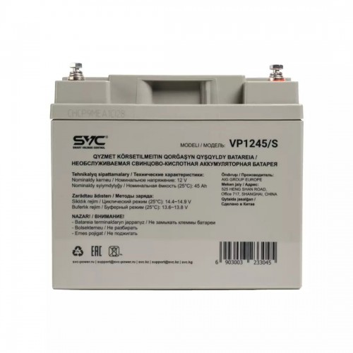 Аккумуляторная батарея SVC VP1245/S 12В 45 Ач (195*165*170). Характеристики товара: