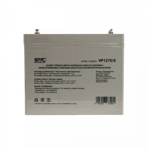 Аккумуляторная батарея SVC VP1275/S 12В 75 Ач (260*169*215). Характеристики товара: