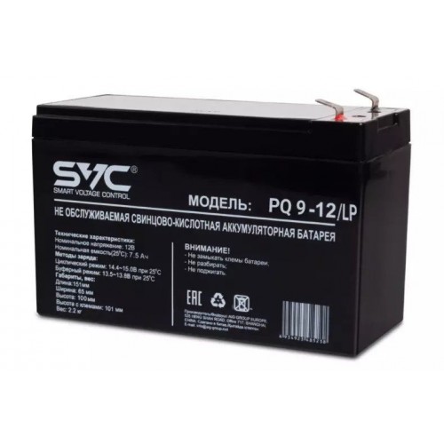 Аккумуляторная батарея SVC PQ9-12/LP 12В 9 Ач. Характеристики товара: