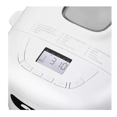 Бренд - Kitfort. Тип устройства товара - Хлебопечь. Модель - КТ-307 . Основной цвет - Белый. Мощность (Вт) - 550 . Максимальный вес выпечки (кг) - есть. Материал корпуса - Пластик. Форма выпечки - Буханка. Выбор цвета корочки - есть. Количество программ выпечки - 14. Хлеб из муки грубого помола - нет. Французский хлеб - есть. Бездрожжевая выпечка - нет. Безглютеновая выпечка - есть. Бородинский хлеб - нет. Кекс - есть. Дисплей - есть. Защита от перегрева - нет. Защита от детей - нет. Диспенсер - нет. Длина (мм).