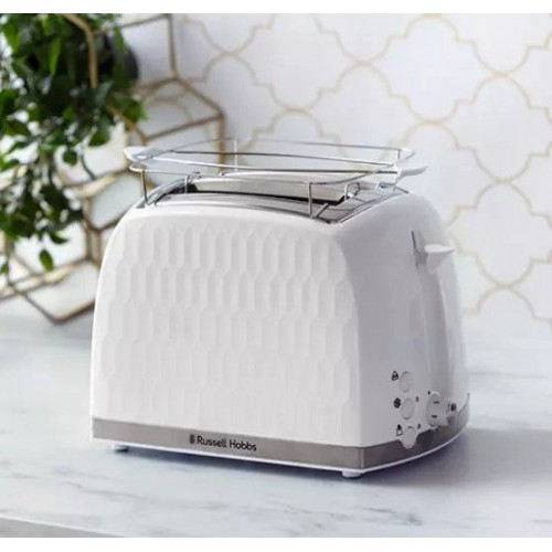 Бренд - Russell Hobbs. Тип устройства товара - Тостер. Модель - 26060-56. Основной цвет - Белый. Мощность (Вт) - 850. Количество отделений - 2. Материал корпуса - Пластик. Одностороннее обжаривание - нет. Функция подогрева - есть. Термоизолированный корпус - нет. Размораживание - Да. Экстра-подъём для маленьких ломтиков хлеба - нет. Решётка для подогрева булочек - есть. Поддон для крошек - есть.