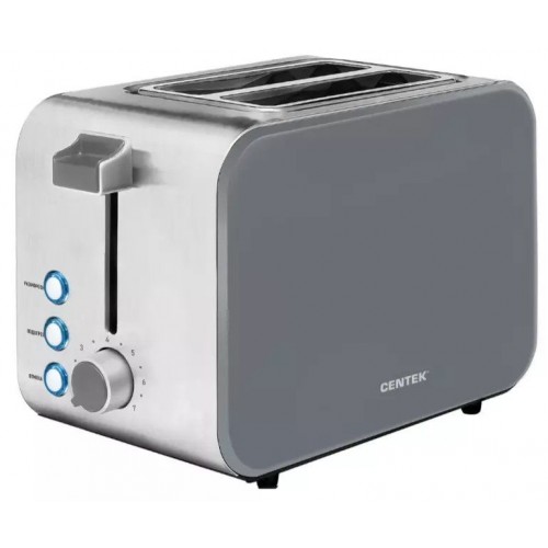 Бренд - Centek. Тип устройства товара - Тостер. Модель - CT-1422. Основной цвет - Серый. Мощность (Вт) - 850. Количество отделений - 2. Материал корпуса - Нержавеющая сталь, пластик. Одностороннее обжаривание - нет. Функция подогрева - есть. Термоизолированный корпус - нет. Размораживание - Да. Экстра-подъём для маленьких ломтиков хлеба - нет. Решётка для подогрева булочек - нет. Поддон для крошек - есть.