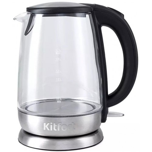 Бренд - Kitfort. Тип устройства товара - Электрочайник. Модель - KT-619. Основной цвет - Комбинированный. Дополнительные цвета - Чёрный. Объём (л) - 1,7. Мощность (Вт) - 2200. Материал корпуса - Стекло. Двойные стенки корпуса - нет. Фильтр в носике - есть. Шкала уровня воды - есть. Индикация - Да. Вращение на подставке - есть. Дополнительно, особенности - Чайник автоматически отключается при закипании и при снятии с подставки, имеет защиту от перегрева и от включения без воды.. Длина (мм).