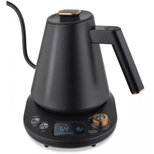 Бренд - Centek. Тип устройства товара - Электрочайник. Модель - CT-1005 . Основной цвет - Чёрный. Объём (л) - 1,0. Мощность (Вт) - 1100. Материал корпуса - Нержавеющая сталь. Двойные стенки корпуса - нет. Тип нагревательного элемента - Скрытый нагревательный элемент. Фильтр в носике - нет. Установка температуры - есть. Поддержание температуры - есть. Шкала уровня воды - нет. Вращение на подставке - есть. Подсветка - нет. Дополнительно, особенности - LCD-дисплей, База с кнопками управления, Закрытый нагревательный элемент, Защита от включения без воды, Защита от перегрева, Носик специальной формы, Стеклянная колба.