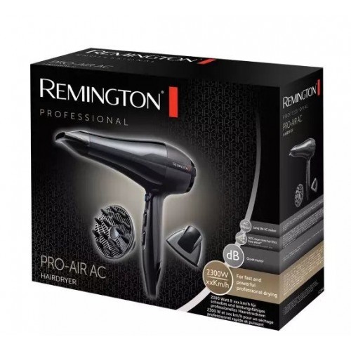 Бренд - Remington. Тип устройства товара - Фен. Модель - AC5999 . Основной цвет - Чёрный. Мощность (Вт) - 2300. Количество температурных режимов - 3. Скорости воздушного потока - 2. Подача холодного воздуха - есть. Защита от перегрева - нет. Ионизация - есть. Количество насадок - 3. Комплектация - Концентратор для быстрой сушки, Узкий концентратор для точной укладки (7мм), Диффузор. Петля для подвешивания - есть. Длина кабеля (м) - нет. Съемный фильтр - есть.
