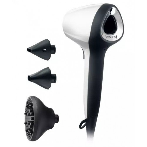 Бренд - Remington. Тип устройства товара - Фен. Модель - D7779 . Основной цвет - Чёрно-белый. Мощность (Вт) - 1800. Количество температурных режимов - 3. Скорости воздушного потока - 2. Подача холодного воздуха - есть. Защита от перегрева - нет. Ионизация - есть. Количество насадок - 3. Комплектация - кейс для хранения и противоскользящий коврик, 3 стайлинг-насадки с вращение на 360° во время использования. Петля для подвешивания - есть. Длина кабеля (м) - нет. Съемный фильтр - нет. Дополнительно, особенности - Светодиодная подсветка, Патентованная система установки насадок, .