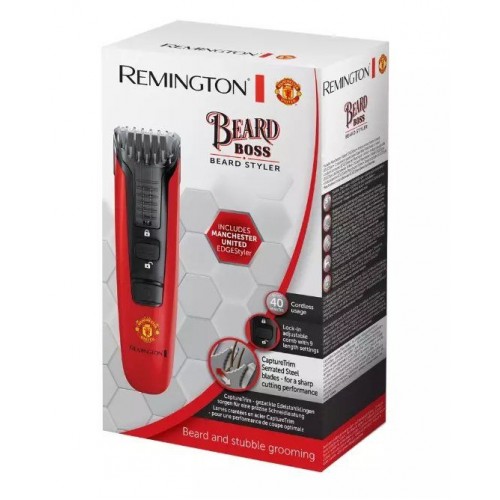 Бренд - Remington. Тип устройства товара - Триммер. Модель - MB4128. Основной цвет - Красно-черный. Назначение триммера - Для стрижки бороды и усов. Число установок длины - 11. Минимальная длина стрижки (мм) - 0.4. Максимальная длина стрижки (мм) - 18. Филировка - нет. Дисплей - нет. Питание устройства - От аккумулятора. Время автономной работы - До 40 минут. Время зарядки аккумулятора - за 16 часов. Дополнительно, особенности - Официальный продукт Manchester United; В комплекте стайлер-шаблон EDGEStyler с логотипом Manchester United Club для создания четких линий и индивидуального стиля; Лезвия "CaptureTrim" - технология создания зубчатых лезвий для эффективной и чистой стрижки; Регулируемая длина стрижки с помощью телескопической насадки-гребня и системой фиксации длины; Щеточка для очистки триммера.