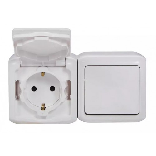 Выключатель с крышкой + Розетка Legrand Forix 16A 250В IP44 накладной белый. Характеристики товара: