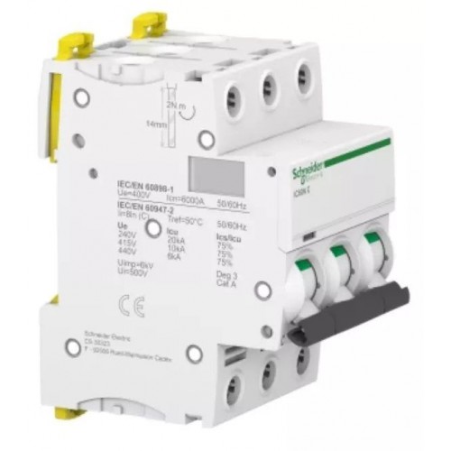 Автоматический выключатель SE A9F79320 Acti9 iC60N 3П 20А C 6кА. Характеристики товара: