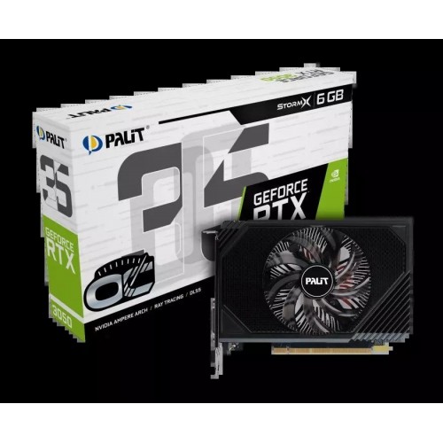 Бренд - Palit. Тип устройства товара - Видеокарта. Модель - GeForce RTX™ 3050 StormX OC. Основной цвет - Чёрный. Подсветка - нет. Линейка графических процессоров - GeForce. Поддержка стандартов видеокартой - OpenGL 4.6","DirectX 12 Ultimate. Графический процессор - GeForce RTX 3050. Минимальная частота работы видеочипа - 1042 МГц. Максимальная частота в турбо режиме - 1492 МГц. Объем видеопамяти - 6 Гб. Тип видеопамяти - GDDR6. Разрядность шины памяти - 96 бит. Разъём подключения (ВНИ) - PCI Express 4.0. Видео интерфейсы - Display Port х 1","HDMI х 1. Максимальное разрешение - 7680x4320. Количество подключаемых мониторов - 3. Необходимо дополнительноe питаниe - нет. Рекомендуемый блок питания - 300 Вт. Низкопрофильная видеокарта - нет. Длина (мм) - 12 месяцев.