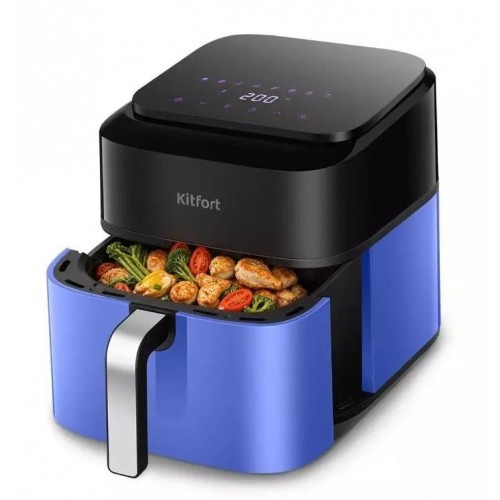 Бренд - Kitfort. Тип устройства товара - Аэрогриль . Модель - КТ-2263 . Основной цвет - Чёрный. Дополнительные цвета - Синий. Мощность (Вт) - 1800. Антипригарное покрытие - есть. Материал корпуса - Пластик. Регулировка температуры - Есть. Наличие дисплея - есть. Автоотключение - есть. Индикация - Да. Термоизолированный корпус - нет. Ручка с защитой от нагревания - нет. Регулировка высоты стойки - нет. Лоток для жира и сока - нет. Ширина (см) - 12 месяцев.