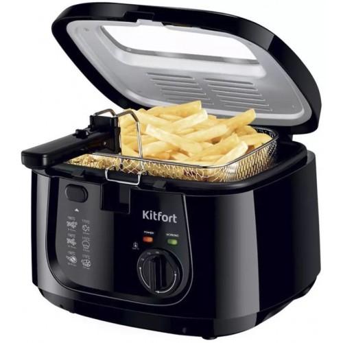 Бренд - Kitfort. Тип устройства товара - Фритюрница. Модель - KT-2018. Основной цвет - Чёрный. Дополнительно, особенности - Плотная крышка оборудована специальным смотровым окошком. 3 температурных режима. Мощность: 1800 Вт. Ёмкость чаши: 2,5 л. Длина (мм) - Китай. Гарантия - 12 месяцев.