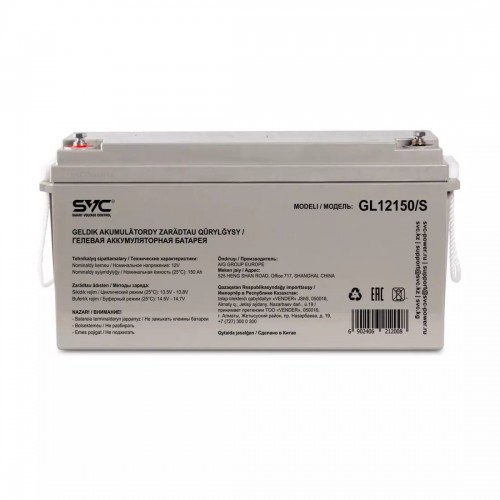 Бренд - SVC. Тип устройства товара - Аккумуляторная батарея. Модель - GL12150 S. Количество в упаковке - 1. Напряжение питания - 12 В..