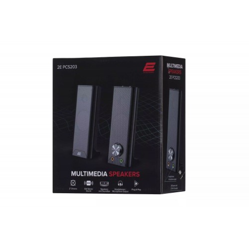 Бренд - 2E. Тип устройства товара - Колонки. Модель - PCS203. Основной цвет - Чёрный. Формат акустической системы - 2.0. Выходная мощность (Вт) - 6 Вт (2x3Вт). Максимальная воспроизводимая частота, Гц - 20000 . Беспроводное подключение - нет. Интерфейсы - USB","3.5 jack. Материал колонок - Пластик","Металл. Питание - USB. Страна производитель - Китай. Гарантия - Нет.