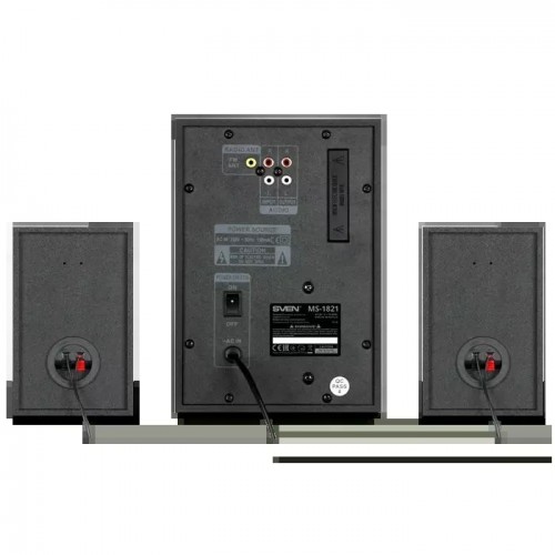 Бренд - Sven. Тип устройства товара - Акустическая система. Модель - MS-1821. Основной цвет - Чёрный. Выходная мощность (Вт) - 44. Максимальная воспроизводимая частота, Гц - 22000. Беспроводное подключение - есть. Пульт дистанционного управления - Есть. Интерфейсы - Bluetooth. Беспроводные интерфейсы - BlueTooth. Материал колонок - MDF. Мощность сабвуфера (Вт) - 239 мм. Глубина сабвуфера - 261 мм. Питание - t~230 В, 50 Гц. Страна производитель - Китай. Гарантия - Нет.