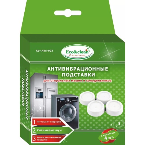 Бренд - Eco&Clean. Тип устройства товара - Подставка. Модель - AVS-003. Подходит для - Стиральных машин","Холодильников","Посудомоечных машин. Количество в комплекте - 4 шт. Гарантия - Нет.