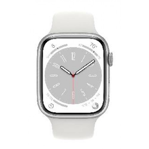 Apple Watch Series 8 GPS, 45mm, Silver Aluminium Case with White Sport Band - Regular (MP6N3GK/A)