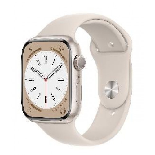 Apple Watch Series 8 GPS, 45mm, Starlight Aluminium Case with, Starlight Sport Band - Regular (MNP23GK/A)