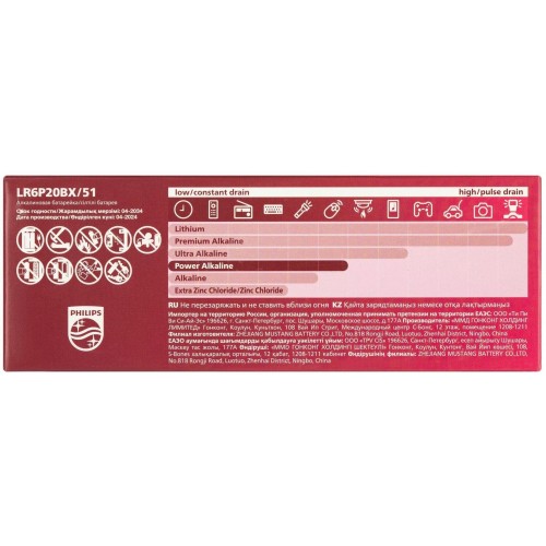 Бренд - Philips. Тип устройства товара - Батарейка. Модель - LR6P20BX 51. Основной цвет - Комбинированный. Форм-фактор - AA . Количество в упаковке - 20. Вид батарейки - Алкалиновая. Напряжение питания - 1.5.