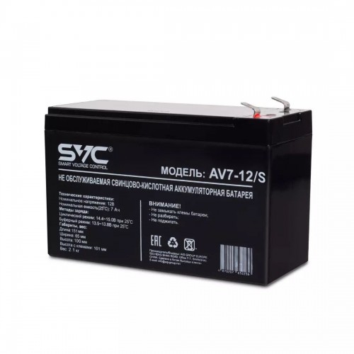 Бренд - SVC. Тип устройства товара - Аккумулятор. Модель - AV7-12 S. Количество в упаковке - 1. Напряжение питания - 12В.
