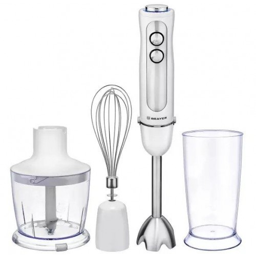 Бренд - BRAYER . Тип устройства товара - Блендер. Тип блендера - Погружной. Модель - 1248BR . Основной цвет - Белый. Дополнительные цвета - Серебристый. Беспроводной - нет. Максимальная мощность (Вт) - 1000. Количество скоростей - 5. Плавная регулировка скорости - есть. Материал корпуса - Пластик. Материал погружной части - Нержавеющая сталь. Объем рабочей емкости (л) - есть. Колка льда - нет. Измельчитель - есть. Импульсный режим - нет. Турборежим - есть. Страна производитель - Китай. Гарантия - 12 месяцев.