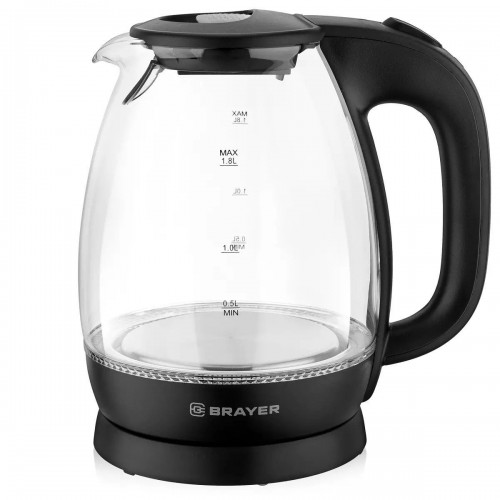 Бренд - BRAYER . Тип устройства товара - Электрочайник. Модель - BR1026 . Основной цвет - Чёрный. Объём (л) - 1,8. Мощность (Вт) - 2200. Материал корпуса - Термостойкое стекло. Двойные стенки корпуса - нет. Фильтр в носике - есть. Установка температуры - нет. Поддержание температуры - нет. Шкала уровня воды - есть. Индикация - Да. Вращение на подставке - есть. Подсветка - есть. Дополнительно, особенности - Отключение при отсутствии воды.