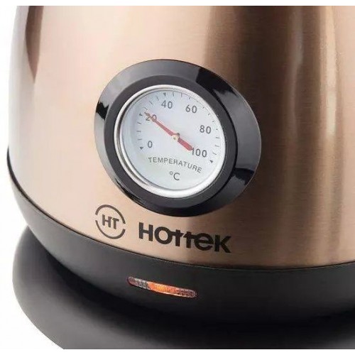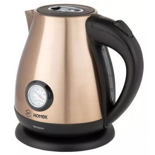 Бренд - Hottek. Тип устройства товара - Электрочайник. Модель - HT-960-021. Основной цвет - Бронзовый. Дополнительные цвета - Чёрный. Объём (л) - 1,7. Мощность (Вт) - 2200. Материал корпуса - Нержавеющая сталь. Двойные стенки корпуса - нет. Тип нагревательного элемента - Скрытый нагревательный элемент. Фильтр в носике - есть. Материал фильтра - Сталь. Установка температуры - нет. Поддержание температуры - нет. Шкала уровня воды - есть. Индикация - Да. Вращение на подставке - есть. Подсветка - нет. Дополнительно, особенности - Место для хранения шнура; Длина шнура: 0.75 м.