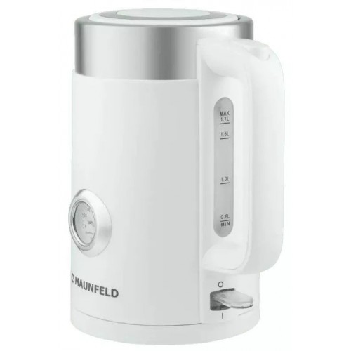Бренд - MAUNFELD. Тип устройства товара - Чайник. Модель - MFK-631BL. Основной цвет - Белый. Объём (л) - 1,7. Мощность (Вт) - 2150. Материал корпуса - Пластик. Двойные стенки корпуса - нет. Тип нагревательного элемента - Скрытый нагревательный элемент. Фильтр в носике - есть. Установка температуры - нет. Поддержание температуры - нет. Шкала уровня воды - есть. Индикация - Да. Вращение на подставке - есть. Подсветка - нет. Длина (мм).