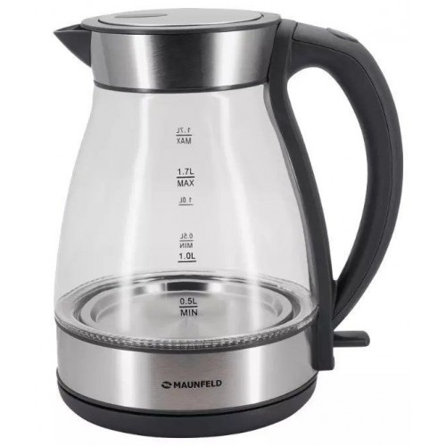 Бренд - MAUNFELD. Тип устройства товара - Электрочайник. Модель - MFK-634G.SP. Основной цвет - Прозрачный. Дополнительные цвета - Чёрный","Серый","Серебристый. Объём (л) - 1,7. Мощность (Вт) - 2200. Материал корпуса - Стекло, пластик. Двойные стенки корпуса - нет. Тип нагревательного элемента - Скрытый нагревательный элемент. Фильтр в носике - есть. Установка температуры - нет. Поддержание температуры - нет. Шкала уровня воды - есть. Индикация - Да. Вращение на подставке - есть. Подсветка - есть. Дополнительно, особенности - Отключение при отсутствии воды, Отключение при закипании .