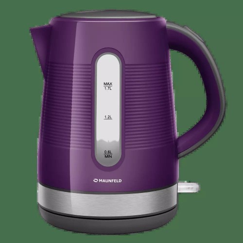 Бренд - MAUNFELD. Тип устройства товара - Чайник. Модель - MGK-631VL. Основной цвет - Фиолетовый. Объём (л) - 1,7. Мощность (Вт) - 2200. Двойные стенки корпуса - нет. Фильтр в носике - есть. Установка температуры - нет. Поддержание температуры - нет. Шкала уровня воды - есть. Индикация - Да. Вращение на подставке - есть. Подсветка - нет. Длина (мм).