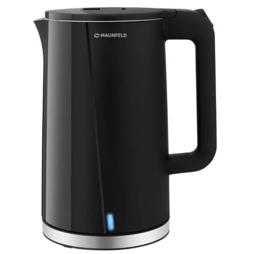 Бренд - MAUNFELD. Тип устройства товара - Электрочайник. Модель - MGK-633BK. Основной цвет - Чёрный. Дополнительные цвета - Серебристый. Объём (л) - 1,7. Мощность (Вт) - 2200. Материал корпуса - Нержавеющая сталь, пластик. Двойные стенки корпуса - есть. Тип нагревательного элемента - Скрытый нагревательный элемент. Фильтр в носике - нет. Шкала уровня воды - есть. Индикация - Да. Вращение на подставке - есть. Ширина (мм).