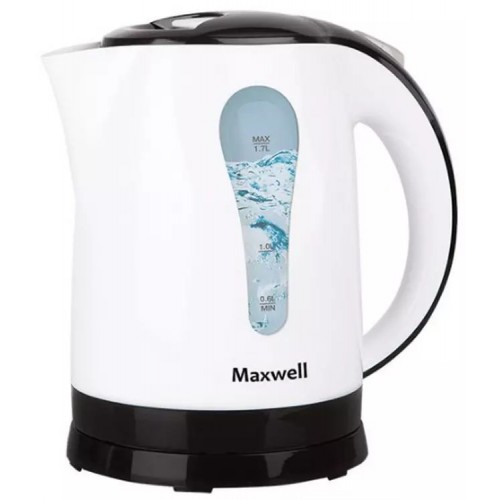 Бренд - Maxwell. Тип устройства товара - Электрочайник. Модель - MW-1079. Основной цвет - Белый. Дополнительные цвета - Чёрный. Объём (л) - 1,8. Мощность (Вт) - 2200. Материал корпуса - Пластик. Двойные стенки корпуса - нет. Тип нагревательного элемента - Скрытый нагревательный элемент. Фильтр в носике - есть. Материал фильтра - Нейлон. Установка температуры - нет. Поддержание температуры - нет. Шкала уровня воды - есть. Индикация - Да. Вращение на подставке - нет. Подсветка - нет.