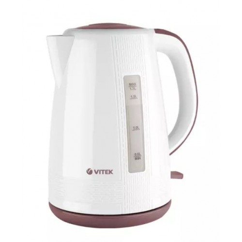 Бренд - Vitek. Тип устройства товара - Электрочайник. Модель - VT-7055. Основной цвет - Белый. Дополнительные цвета - Коричневый. Объём (л) - 1,7. Мощность (Вт) - 2150. Материал корпуса - Термопластик. Двойные стенки корпуса - нет. Тип нагревательного элемента - Скрытый нагревательный элемент. Фильтр в носике - есть. Шкала уровня воды - есть. Вращение на подставке - есть. Дополнительно, особенности - Отключение при отсутствии воды: есть. Отсек для хранения шнура: есть. .