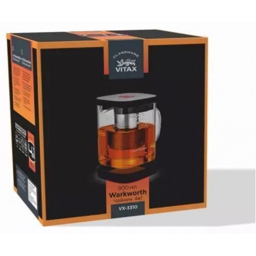 Бренд - Vitax . Тип устройства товара - Чайник. Модель - VX-3310. Объём (л) - 0,9. Материал внешнего покрытия - Жаропрочное стекло. Материал рукоятки - Стекло. Основной цвет - Прозрачный. Страна производитель - Китай. Гарантия - 12 месяцев.