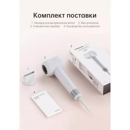 Бренд - Dreame . Тип устройства товара - Фен. Модель - Hair Gleam. Основной цвет - Серый. Материал корпуса - Пластик. Мощность (Вт) - 1600. Количество температурных режимов - 4. Скорости воздушного потока - 2. Подача холодного воздуха - есть. Защита от перегрева - нет. Ионизация - есть. Уровень шума (дБ) - 58. Количество насадок - 1. Комплектация - Насадка для укладки Фен Коробка Руководство пользователя. Петля для подвешивания - нет. Длина кабеля (м) - нет. Съемный фильтр - нет. Дополнительно, особенности - Температура: Постоянная температура 57 °C, горячий воздух, цикл «горячий холодный воздух», холодный воздух. Вес (г.) - 330. Высота коробки (см).