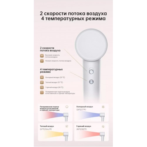 Бренд - Dreame . Тип устройства товара - Фен. Модель - Hair Gleam. Основной цвет - Серый. Материал корпуса - Пластик. Мощность (Вт) - 1600. Количество температурных режимов - 4. Скорости воздуш... →