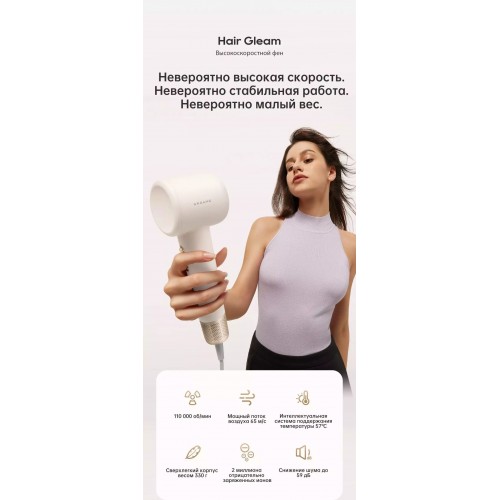 Фен высокоскоростной Dreame Gleam White (AHD12A-WH) 1600 Вт 1 насадка ионизация
