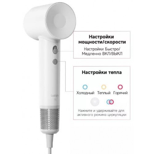 Бренд - Laifen. Тип устройства товара - Фен. Модель - SE Lite. Основной цвет - Белый. Материал корпуса - Поликарбонат. Мощность (Вт) - 1400. Количество температурных режимов - 4. Скорости воздушного пото... →