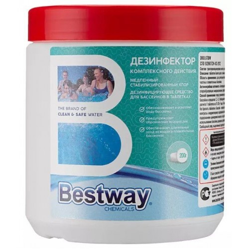 Химия для бассейна Bestway Chemicals Комплексная дезинфекция 600гр. B1909220. Характеристики товара:
