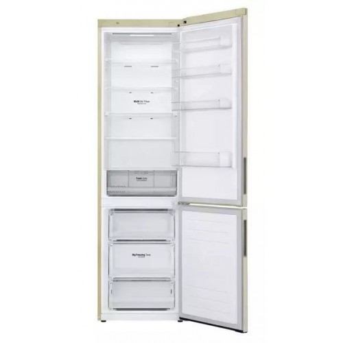 Бренд - LG. Тип устройства товара - Холодильник. Модель - GA-B509CESL. Тип конструкции холодильника - С нижней морозилкой. Система размораживания - Total No Frost. Класс энергопотребления - A+. Климатический класс холодильника - SN-ST. Уровень шума (дБ) - 36. Перенавешивание дверей холодильника - Да. Материал корпуса - Металл. Потребление энергии, кВтч - 325. Общий полезный объем (л) - 384. Полезный объем холодильной камеры (л) - 277. Полезный объем морозильной камеры (л) - 107. Тип компрессора - Инверторный. Мощность замораживания (кг сутки) - 12. Быстрая заморозка - есть. Винная полка - нет. Зона свежести - есть. Количество полок - 3. Количество дверных полок - 4. Складная полка - есть. Лоток для яиц - есть. Количество ящиков для овощей - 1. Дисплей - есть. Индикация температуры - нет. Индикация открытой двери - есть. Генератор льда - нет. Суперзаморозка - нет. Суперохлаждение - есть. Режим "Отпуск" - нет. Антибактериальное покрытие - есть. Диспенсер для воды - нет. Увеличенное пространство - нет. Высота холодильника (см) - 203. Ширина холодильника (см) - 59,5. Глубина холодильника (см) - 68,2. Вес без упаковки (кг) - 74. Основной цвет - Золотистый.