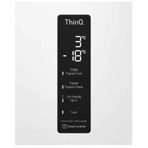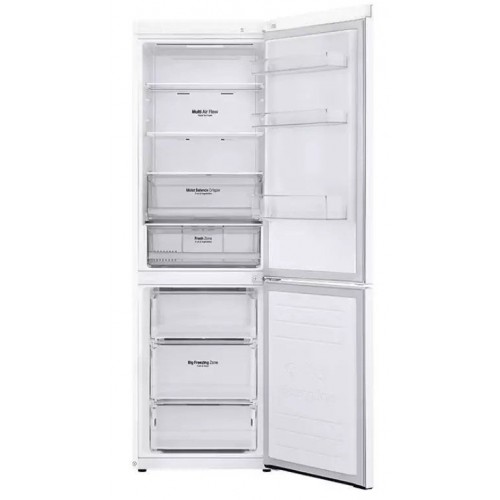 Бренд - LG. Тип устройства товара - Холодильник. Модель - GC-B459MQWM. Тип конструкции холодильника - С нижней морозилкой. Класс энергопотребления - A++. Уровень шума (дБ) - 36 дБ. Тип управления - Электронное. Потребление энергии, кВтч - 245 кВч в год. Общий полезный объем (л) - 234. Полезный объем холодильной камеры (л) - 247. Полезный объем морозильной камеры (л) - 127. Тип компрессора - Инверторный. Быстрая заморозка - есть. Система охлаждения - Door Cooling+. Винная полка - нет. Зона свежести - нет. Количество дверных полок - 3. Складная полка - есть. Лоток для яиц - нет. Количество ящиков для овощей - 2. Дисплей - есть. Индикация температуры - нет. Индикация открытой двери - нет. Генератор льда - есть. Суперзаморозка - нет. Суперохлаждение - нет. Режим "Отпуск" - нет. Антибактериальное покрытие - нет. Диспенсер для воды - нет. Увеличенное пространство - нет. Высота холодильника (см) - 186. Ширина холодильника (см) - 59,5. Глубина холодильника (см) - 68,2. Вес без упаковки (кг) - 70. Основной цвет - Белый.