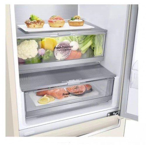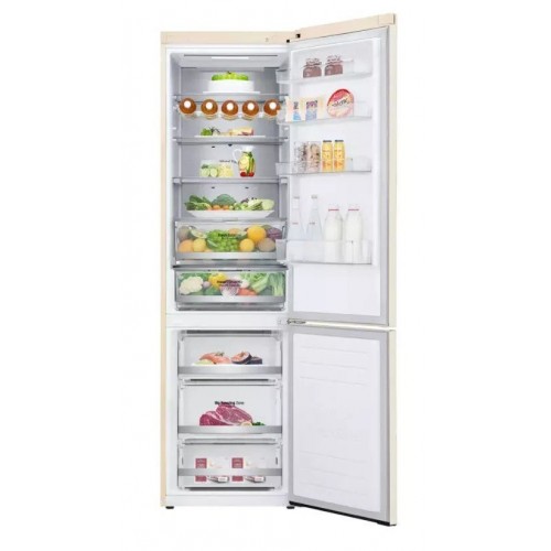 Бренд - LG. Тип устройства товара - Холодильник. Модель - GC-B509SEUM. Тип конструкции холодильника - С нижней морозилкой. Класс энергопотребления - A++. Климатический класс холодильника - T. Уровень шума (дБ) - 36. Перенавешивание дверей холодильника - Да. Потребление энергии, кВтч - 275. Встраиваемая - Нет. Общий полезный объем (л) - 384. Полезный объем холодильной камеры (л) - 233. Полезный объем морозильной камеры (л) - 107. Тип компрессора - Инверторный. Мощность замораживания (кг сутки) - 12. Быстрая заморозка - есть. Система охлаждения - No Frost. Винная полка - есть. Зона свежести - нет. Количество полок - 2. Количество дверных полок - 4. Складная полка - есть. Лоток для яиц - есть. Количество ящиков для овощей - 2. Дисплей - нет. Индикация температуры - есть. Индикация открытой двери - есть. Генератор льда - есть. Суперзаморозка - нет. Суперохлаждение - нет. Режим "Отпуск" - нет. Антибактериальное покрытие - нет. Диспенсер для воды - нет. Увеличенное пространство - нет. Высота холодильника (см) - 203. Ширина холодильника (см) - 59,5. Глубина холодильника (см) - 68,2. Вес без упаковки (кг) - 75. Основной цвет - Бежевый.