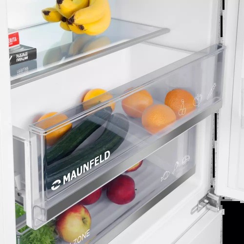 Бренд - MAUNFELD. Тип устройства товара - Холодильник. Модель - MBF19369NFWGR LUX. Тип конструкции холодильника - С нижней морозилкой. Система размораживания - Total No Frost. Класс энергопотребления - A+. Климатический класс холодильника - ST. Уровень шума (дБ) - 41. Перенавешивание дверей холодильника - Да. Тип управления - Сенсорное. Потребление энергии, кВтч - 335. Встраиваемая - Да. Общий полезный объем (л) - 341. Тип компрессора - Инверторный. Мощность замораживания (кг сутки) - 3. Быстрая заморозка - есть. Винная полка - есть. Зона свежести - есть. Количество полок - 5. Количество дверных полок - 4. Складная полка - нет. Лоток для яиц - есть. Количество ящиков для овощей - 2. Дисплей - есть. Индикация температуры - есть. Индикация открытой двери - есть. Генератор льда - нет. Суперзаморозка - есть. Суперохлаждение - есть. Режим "Отпуск" - есть. Антибактериальное покрытие - нет. Диспенсер для воды - нет. Увеличенное пространство - нет. Высота холодильника (см) - 193.7. Ширина холодильника (см) - 69. Глубина холодильника (см) - 55. Вес без упаковки (кг) - 80.4. Основной цвет - Белый.