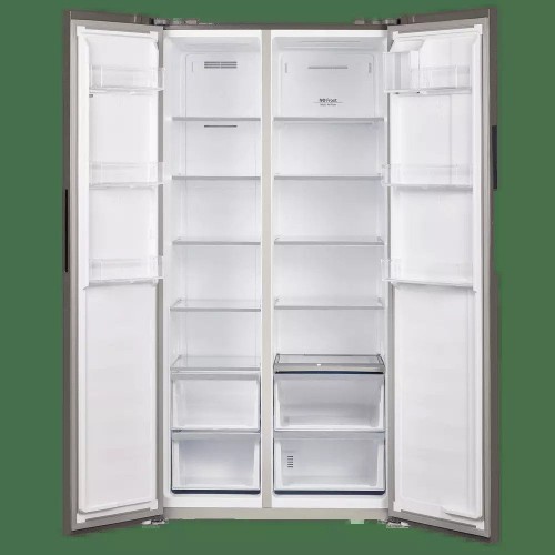 Бренд - MAUNFELD. Тип устройства товара - Холодильник. Модель - MFF191NFSX . Тип конструкции холодильника - Side by Side. Система размораживания - Total No Frost. Класс энергопотребления - A+. Климатический класс холодильника - N","SN","ST","T. Уровень шума (дБ) - 37. Перенавешивание дверей холодильника - Нет. Тип управления - Сенсорное. Потребление энергии, кВтч - 510. Встраиваемая - Нет. Общий полезный объем (л) - 606. Тип компрессора - Инверторный. Мощность замораживания (кг сутки) - 11. Быстрая заморозка - есть. Система охлаждения - tTotal No Frost. Винная полка - нет. Зона свежести - нет. Количество полок - 5. Количество дверных полок - 6. Складная полка - нет. Лоток для яиц - есть. Количество ящиков для овощей - 2. Дисплей - есть. Индикация температуры - есть. Индикация открытой двери - есть. Генератор льда - нет. Суперзаморозка - нет. Суперохлаждение - нет. Режим "Отпуск" - нет. Антибактериальное покрытие - нет. Диспенсер для воды - нет. Увеличенное пространство - нет. Высота холодильника (см) - 191.2. Ширина холодильника (см) - 95.5. Глубина холодильника (см) - 63.5. Вес без упаковки (кг) - 89.5. Основной цвет - Нержавеющая сталь.