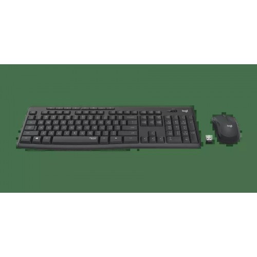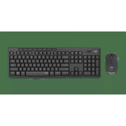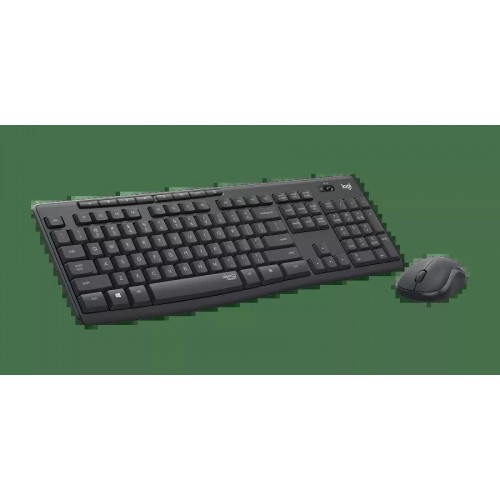 Бренд - Logitech. Тип устройства товара - Комплект клавиатура + мышь. Модель - 920-009807. Основной цвет - Чёрный. Механизм клавиш - Механический. Низкопрофильные клавиши - нет. Бесшумные клавиши - есть. Цифровой блок клавиатуры - нет. Клавиша функции (Fn) - нет. Материал корпуса - Пластик. Защита от попадания воды - есть. Количество кнопок - 3. Хват - Для правой руки. Материал покрытия - Пластик. Тип мыши - Оптическая. Тип подключения - Беспроводной. Разъём подключения (ВНИ) - USB. Тип питания - 2xAAA. Дополнительно, особенности - Клавиатура с 2 батарейками типа AAA. Мышь с 1 батарейкой типа AA. Длина (мм).
